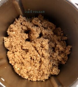 Trituramos todos los ingredientes. Tiene que quedar una masa ligeramente pegajosa que se pueda manipular con facilidad, tal y como la siguiente imagen.